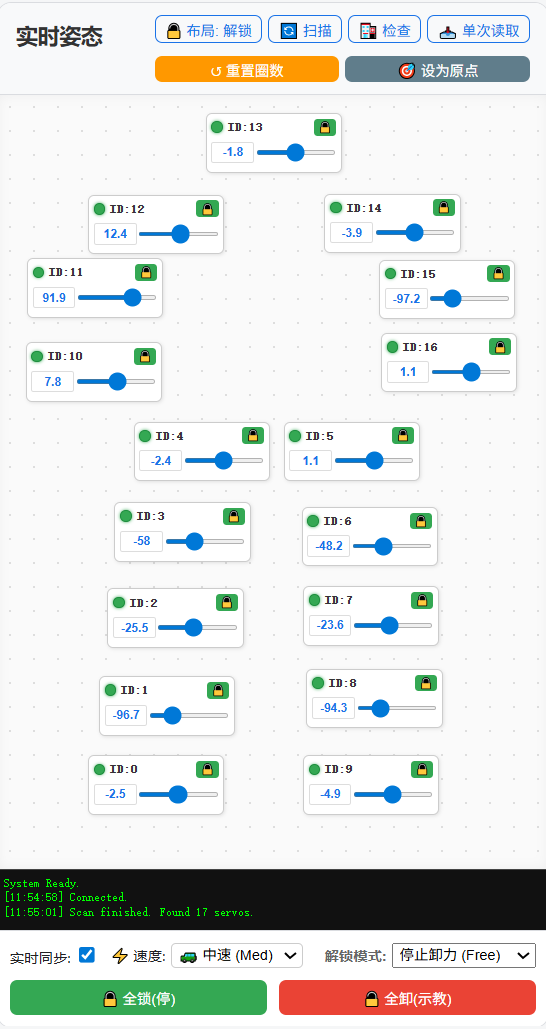 - Scan: Re‑scan online servos.