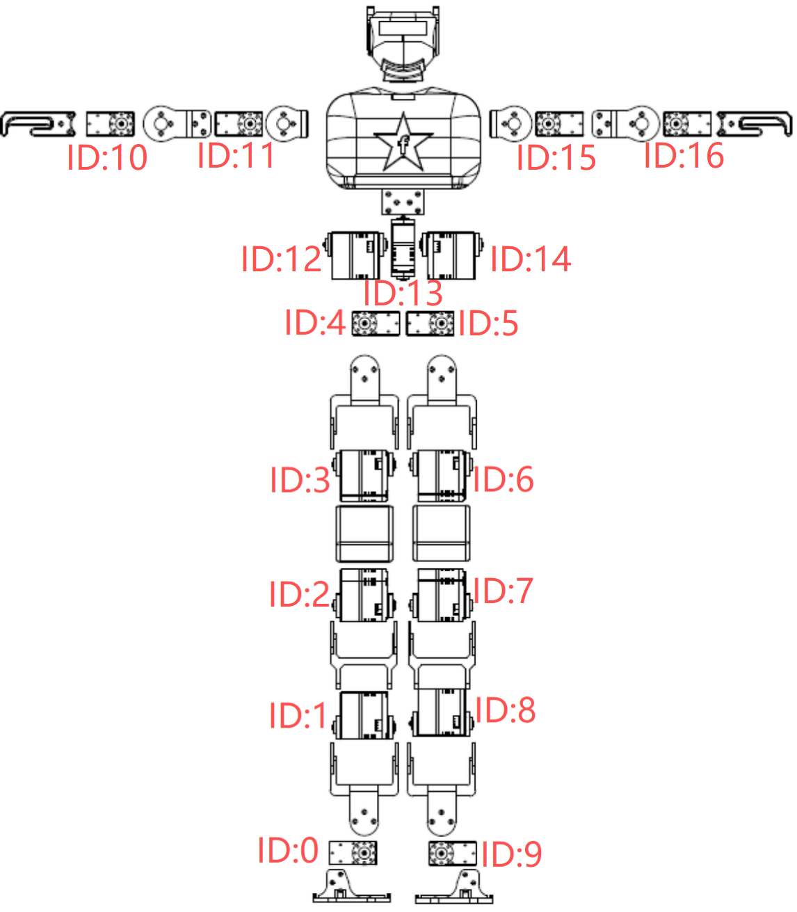 - Structure overview and default servo IDs