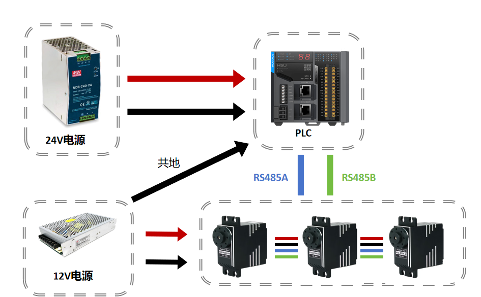 | Power- (must share GND with PLC) | RS485 Servo- |