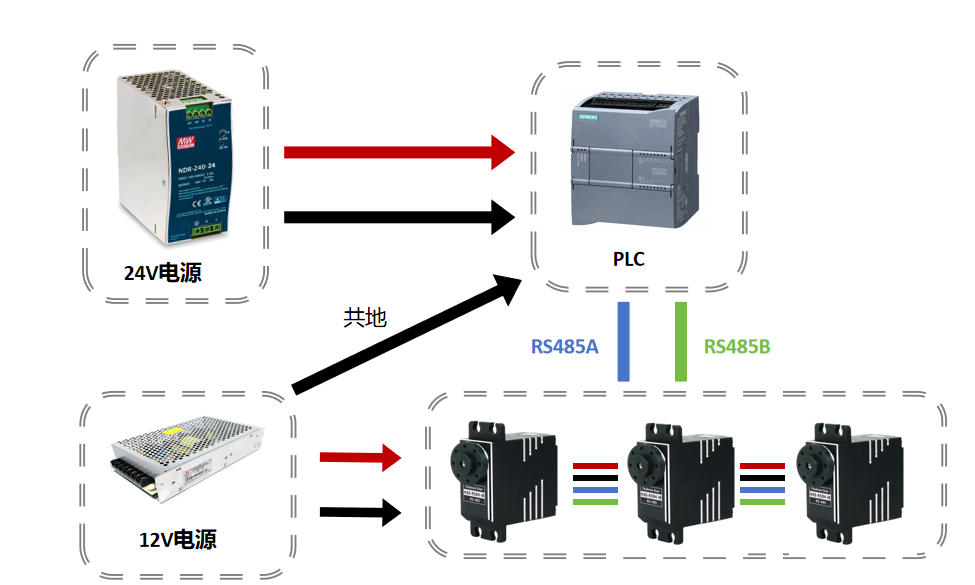 | PLC-B | RS485 Servo-B |