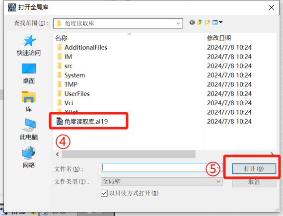- Click Libraries on the right side of the software, open Global libraries, and load the library file with the