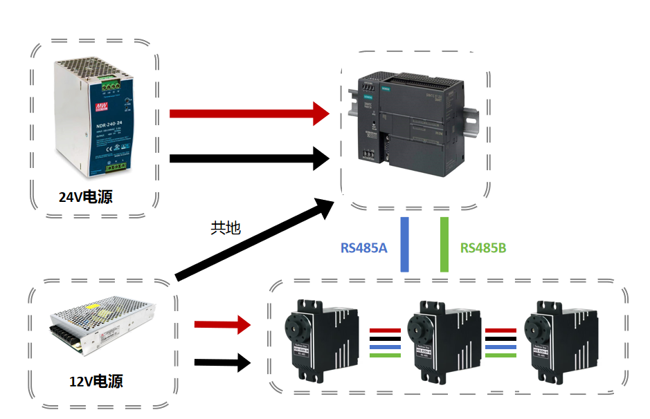 | PLC-B | RS485 Servo-B |