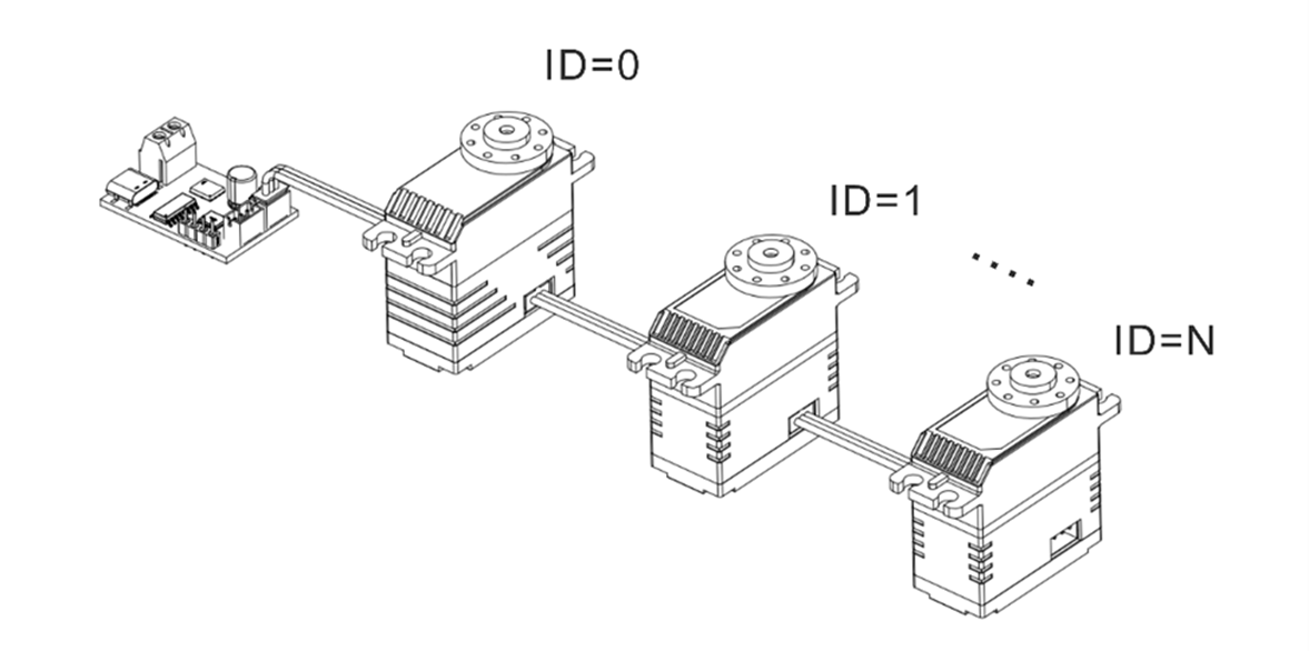 • 每个伺服舵机通过唯一的 ID 与指令内容中的参数进行匹配,仅解析并响应与自身 ID 相关的控制信息。