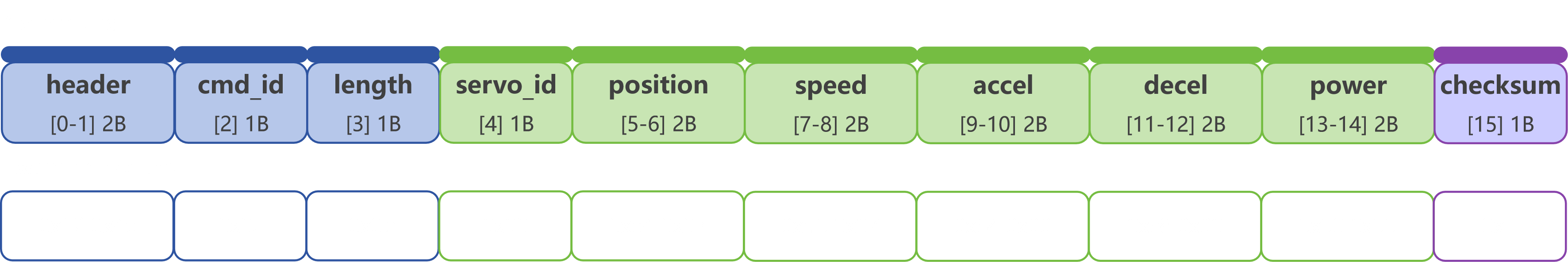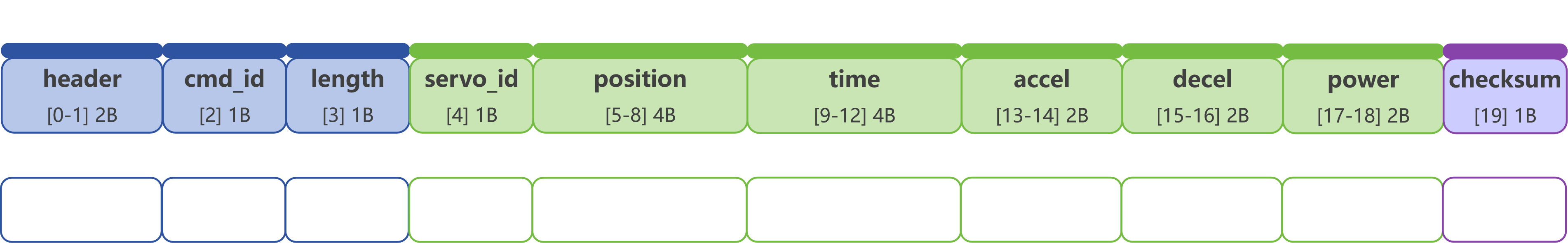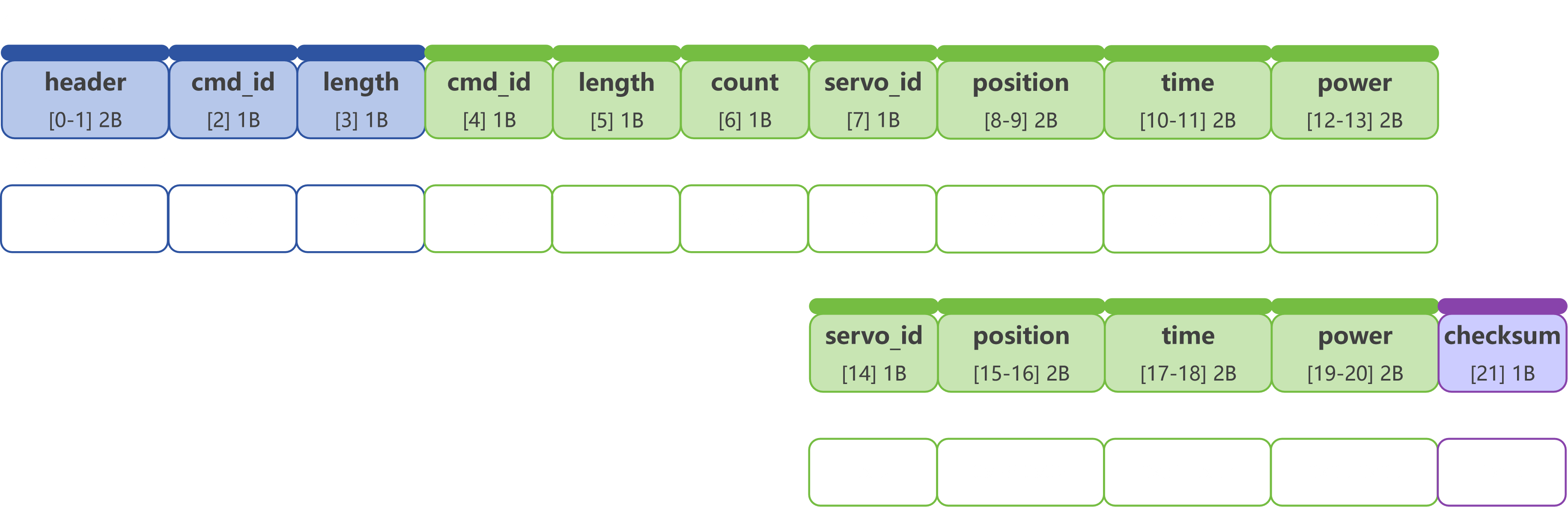 content: Stores control parameters (e.g., servo ID, target position, motion time, power, etc.), depending on the control command.