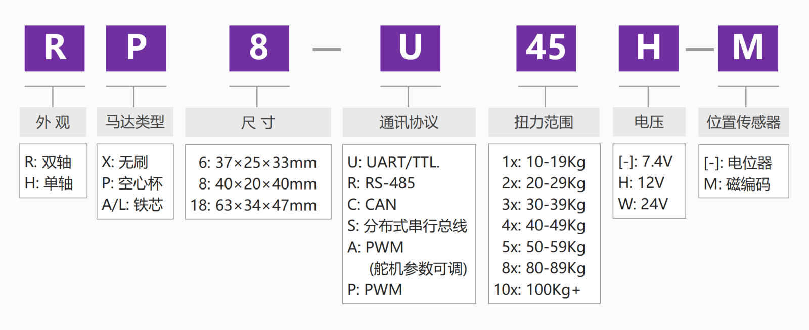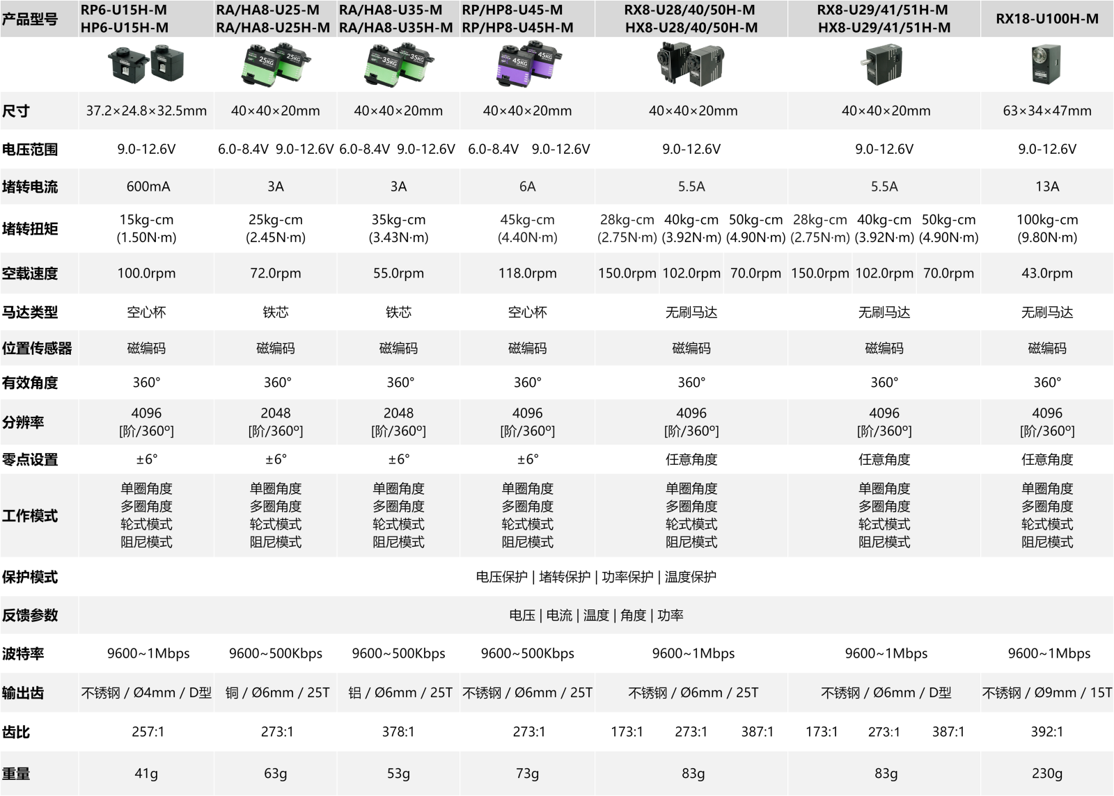 - 双轴外观 | 空心杯电机 | 40×20×40mm | UART通讯协议 | 45kg-cm静态扭矩 | 9.0-12.6v | 磁编码