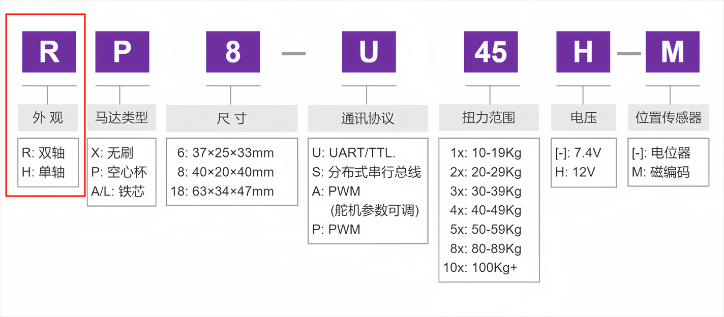 | D轴舵机(HX8-U29H-M) | D轴舵机(RX8-U29H-M) |