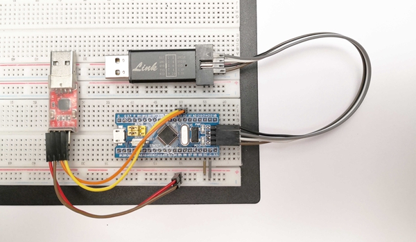 测试用到的激光笔的功率是5mW,波长为650nm,IO口可以直接驱动。最简单的方法是正极接STM32的5v,负极接GND。