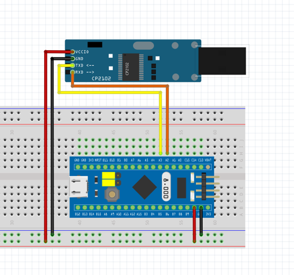 | PB_10 (UART3 Tx) | P5 (PB11, UART3 Rx) |