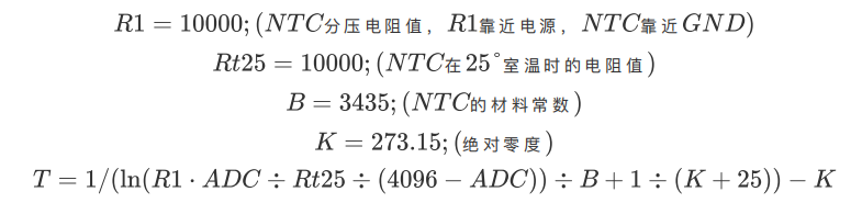 注:ADC转换为摄氏度值公式