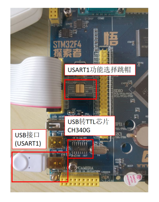 正点原子的开发板上自带了一个USB转TLL模块(CH340G),连接到STM32F407的USART1上。