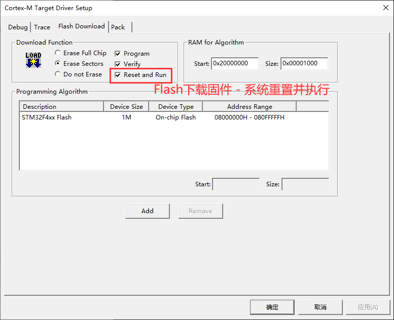 勾选Reset and Run选项,方便测试。