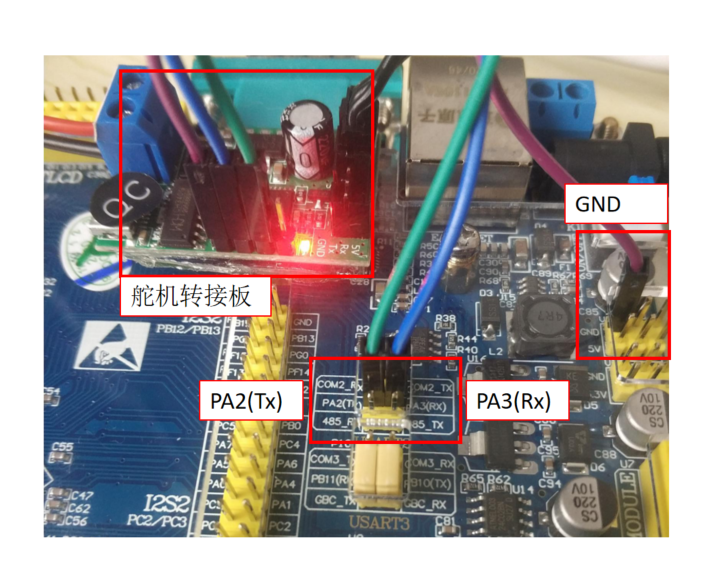 2.2 STM32与总线伺服舵机的接线