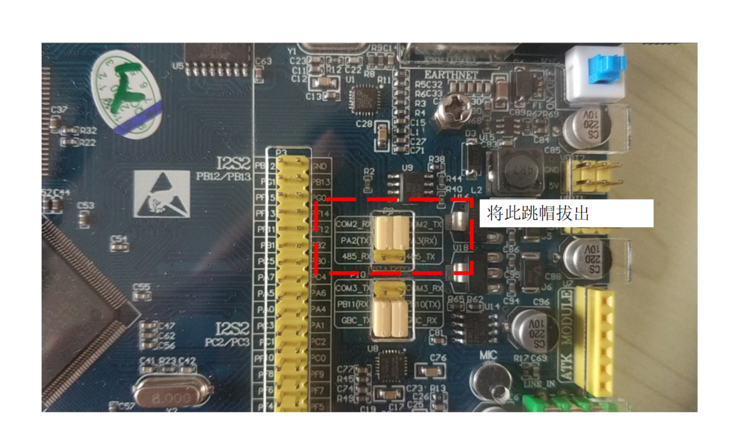 跳帽选择COM2_RX与COM2_TX 相连接,将其作为普通的USART使用。