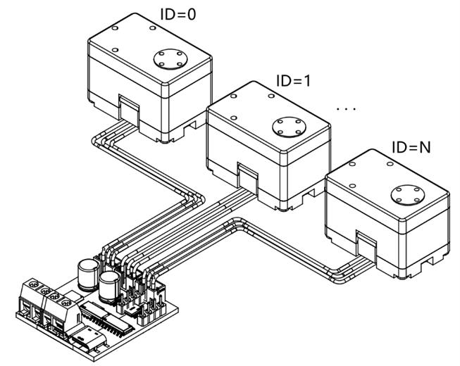- 每个伺服舵机通过唯一的 ID 与指令内容中的参数进行匹配,仅解析并响应与自身 ID 相关的控制信息。