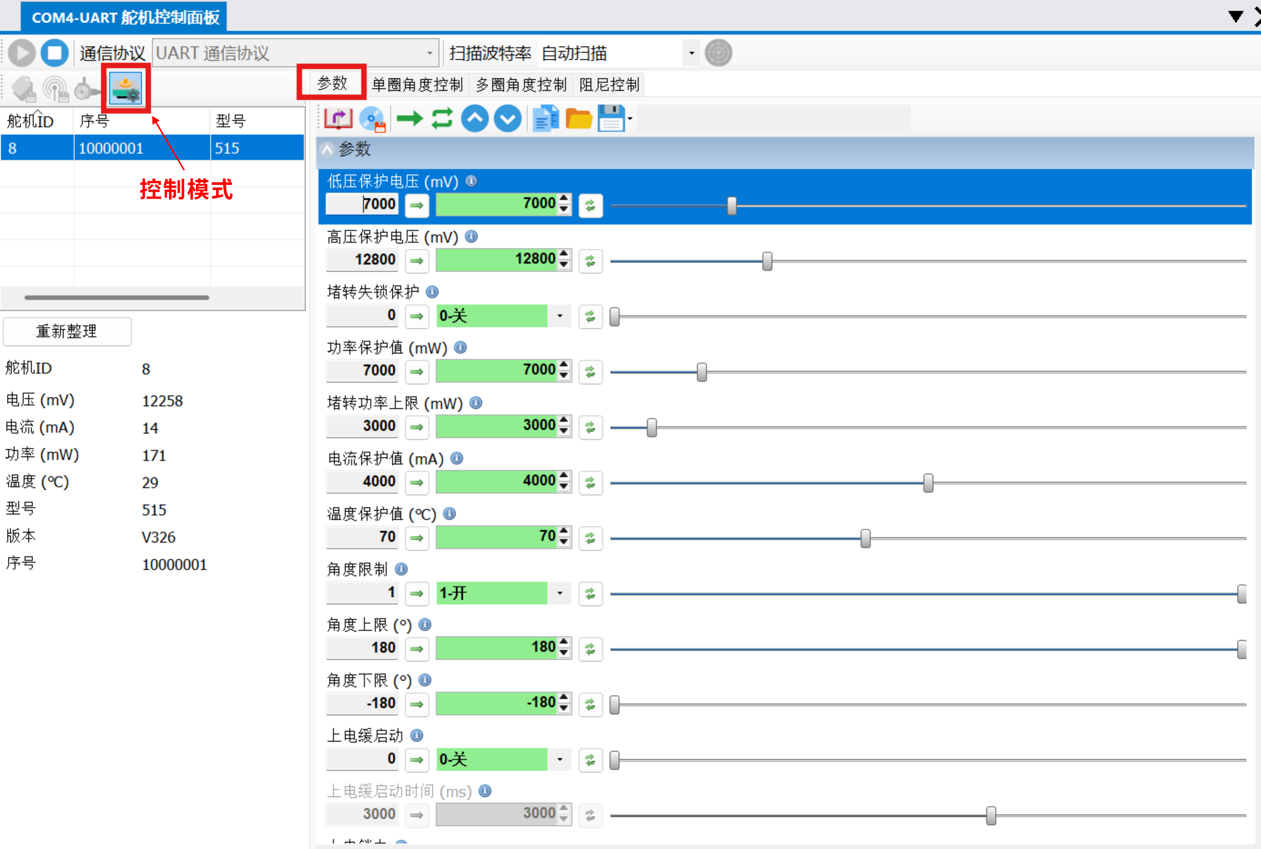 - 参数修改会直接影响舵机保护与运行行为,请在安全工况下操作;