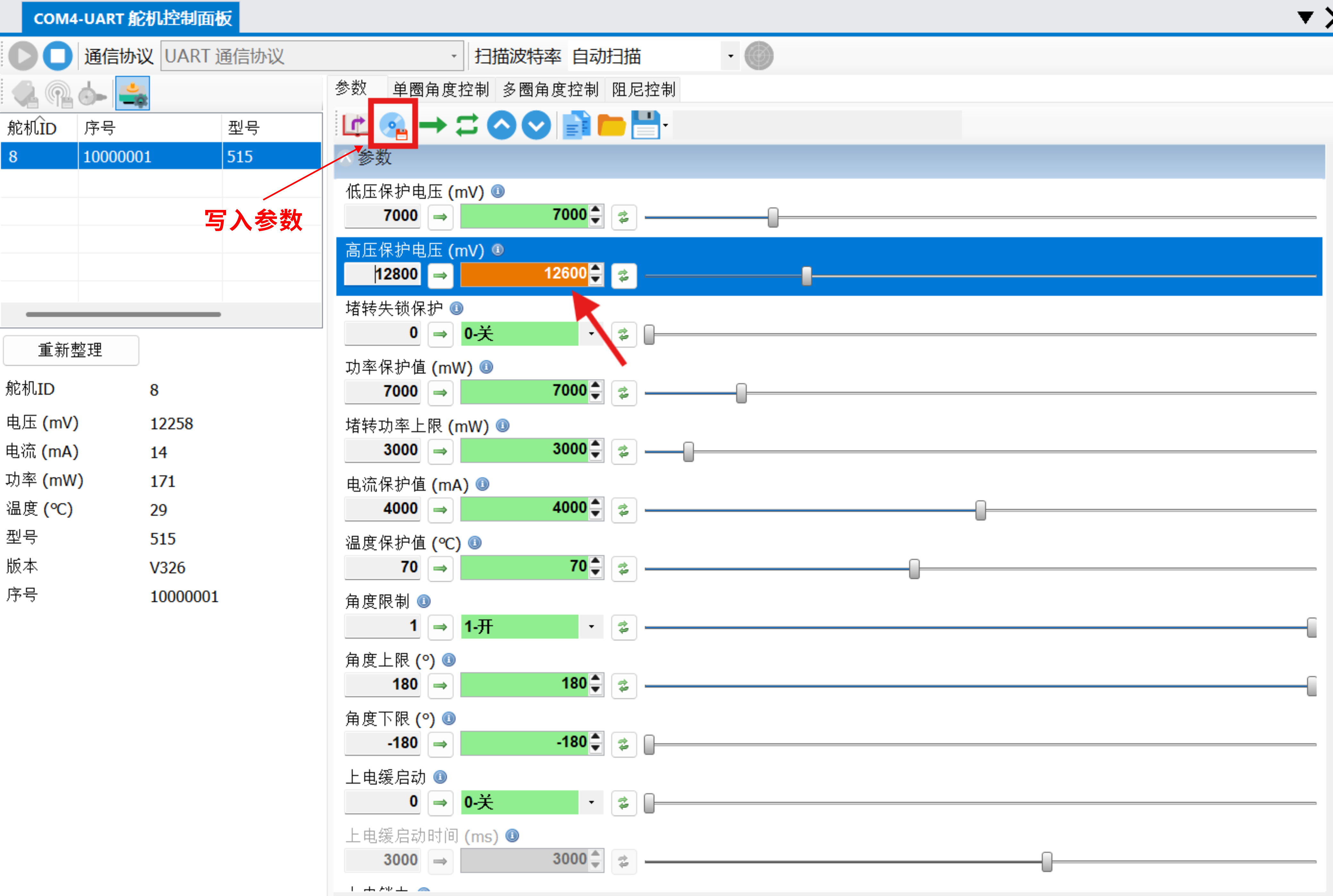 - 点击 写入参数,使参数生效;