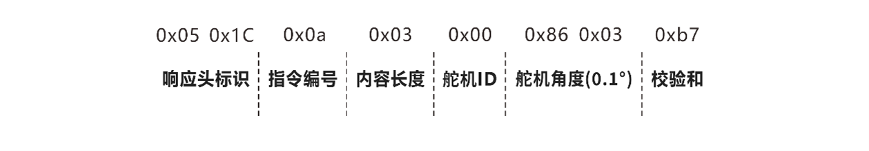 角度回读[10]:向指定ID的伺服舵机发送单圈角度读取指令,可以收到当前位置的角度数据。